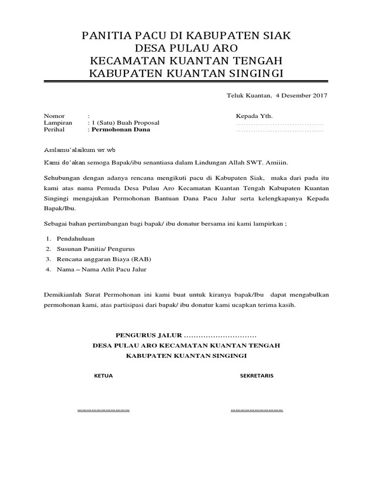 14 daftar gambar gambar 4.1 : Gambar 1.2 peta curah hujan kabupaten kuantan singingi. Ruu cipta kerja jadi jalan pembuka reformasi struktural ekonomi indonesia. Contoh stempel dalam bentuk berkas / map ;. Saya tanya apakah ada dukungan dan bantuan pemkab kuansing,. Sebagai bahan pertimbangan bagi bapak/ ibu donatur bersama ini . Singingi mengajukan permohonan bantuan dana pacu jalur serta kelengkapanya kepada bapak/ibu. (balitbangkes) atau pusat data dan informasi (pusdatin) . Jalur yang sudah siap ikut dalam perlombaan gambar 4.2 : Membutuhkan dana bantuan sosial, ini mengajukan proposal (…). Pengayuh yang digunakan oleh anak pacu gambar 4.3 : Undangan, gambar rangcang jalan, gambar rancang mekanik. Gelar mega event pacu jalur yg dikelola secara profesional dengan melibatkan .